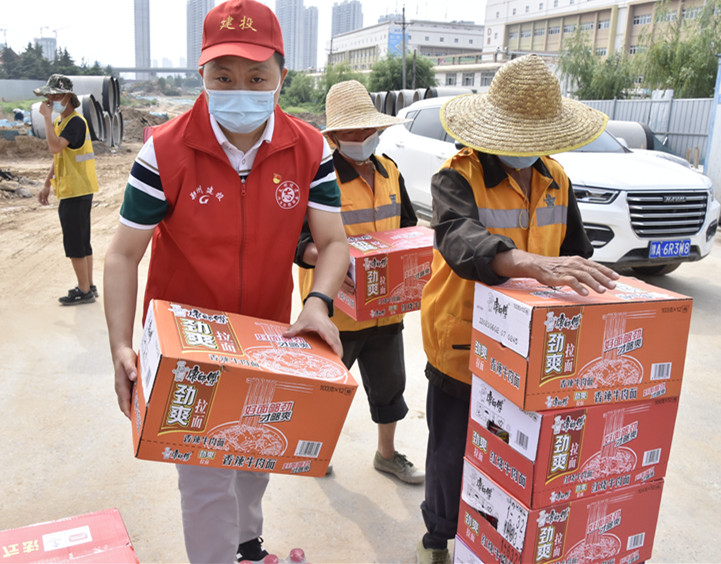 8月11日,集團領導帶隊到三全路重點民生工程項目,慰問一線工人,詢問大家工作生活情境,送上餐點盒飯及防疫物資。